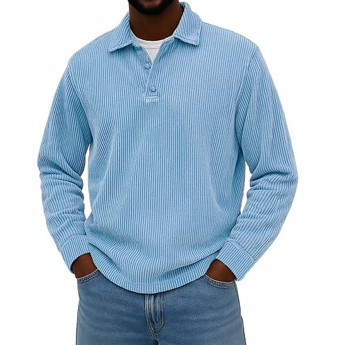 Per uomo Camicia di Velluto a Coste Polo Casuale Sportivo Bavero Manica Lunga Moda Essenziale Blocco di colori Bottoni Autunno Primavera Autunno Vestibilità regolare Nero Blu scuro Blu chiaro Verde