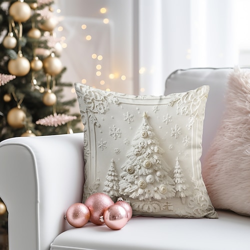 Copricuscini natalizi in velluto di lusso, copricuscini con stampa piatta 2D con Babbo Natale, renne, pupazzo di neve e albero di Natale, federe decorative per divano, soggiorno, camera da letto