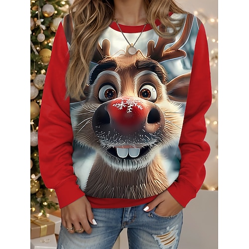 Pullover felpa da donna di Natale con gatto casual maniche lunghe girocollo top regolari streetwear quotidiano casual nero giallo rosso vino blu primavera autunno inverno
