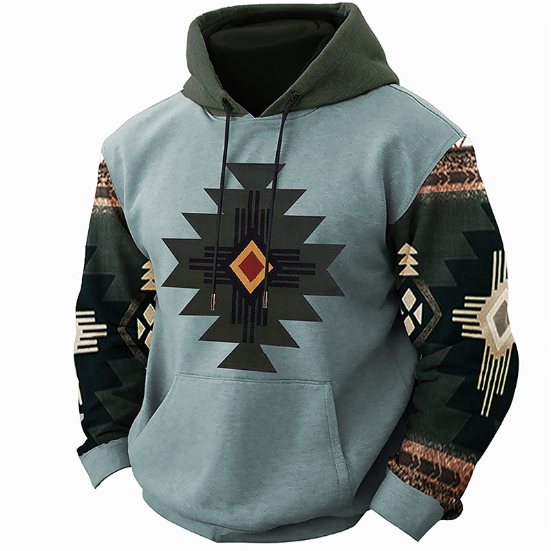 Men's Aztec Bandana Print Hoodie Hoodies Sweatshirt Bohemia Fashion Long Sleeve Hooded Vacation Streetwear Blue Green Pocket 3D Print Fall Winter Designer