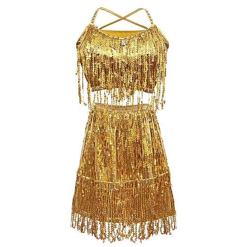 Abbigliamento da danza Samba del Carnevale di Rio Gonne da danza del Carnevale con paillettes e frange costume per performance da festa a tema per donne senza maniche in poliestere costume per