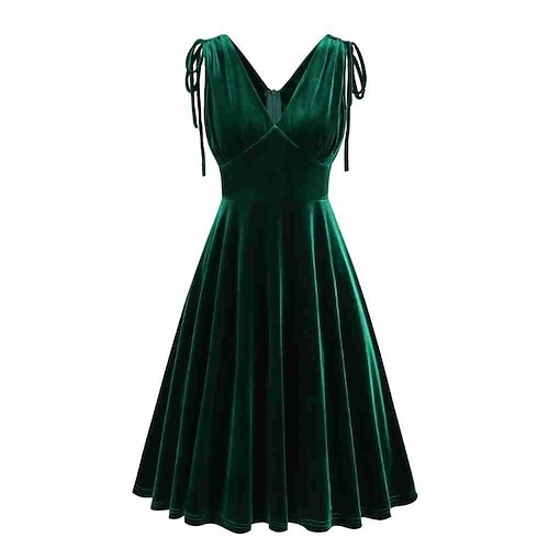 Retrò Vintage Anni 1950 Rockabilly Midi Vestito Abito a trapezio Vestito Svasato Aderente Svasato Scollo a V Costume Per donna Halloween Carnevale San Valentino Casuale Ritorno a casa Festa a tema