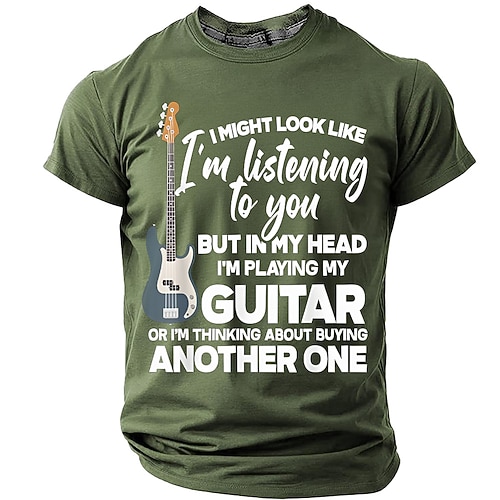 Herren-T-Shirt mit Bass-Grafik: „Ich höre zu, aber in Gedanken spiele ich Gitarre oder kaufe mir eine neue." – Lustiges, sarkastisches T-Shirt mit Bass-Motiv, normale Passform, Geschenk für