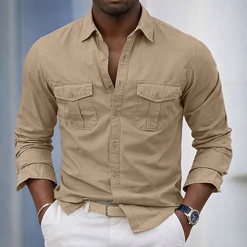 Per uomo Camicia Camicie da lavoro Camicia con bottoni Camicia da carico Nero Bianco Rosso Kaki Verde militare Manica lunga Liscio Bavero Da mare Per eventi Tasca frontale Abbigliamento 100% cotone