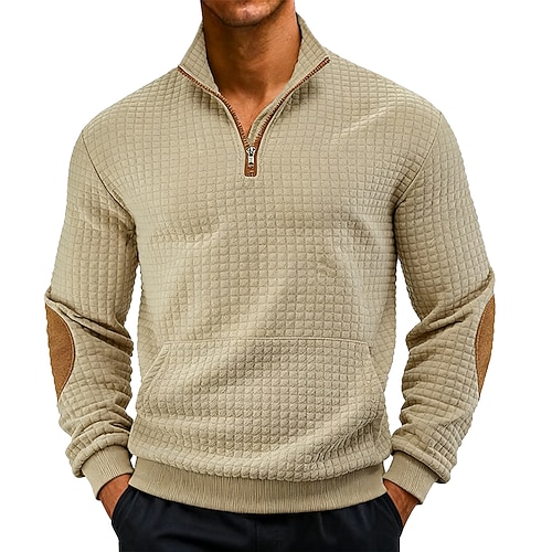 Per uomo Felpa con zip Felpa a nido d'ape Maglione Nero Bianco Blu marino Cachi Grigio scuro Mezza zip Semplice Cerniera Tasca Lavoro Sport Outdoor Casuale senza stampa Attivo Vintage Cool