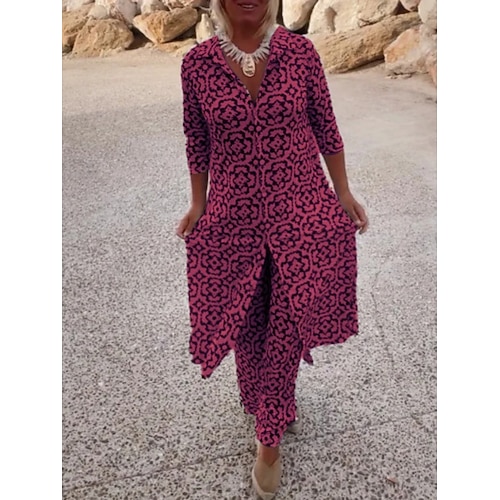Per donna Set di Pantaloni Bolero Top Manica Lunga Colletto a Camicia Geometrico Stampato Moda Streetwear Casuale Quotidiano All'aperto Bianco Fucsia Verde Estate Vestibilità comoda
