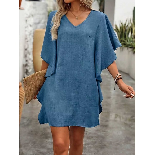 Per donna Mini Abito Abito a Tubino Casual Quotidiano Vestibilità comoda Semplice Mezza Manica Scollo a V Blu Nero Vino Rosso Estate Primavera Autunno