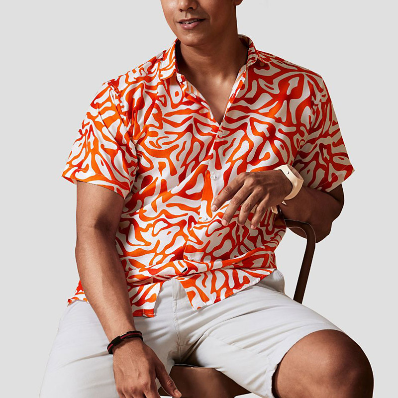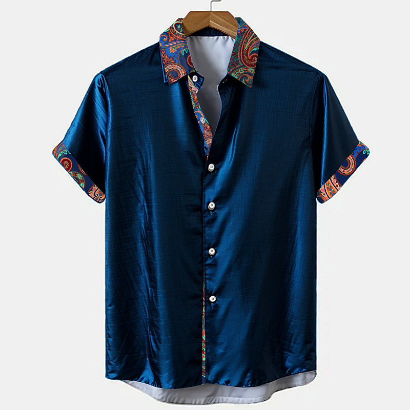 Men's Floral Button Up Shirt Short Sleeve Fashion Casual Party Casual Summer Spring Turndown Button Up Black Blue