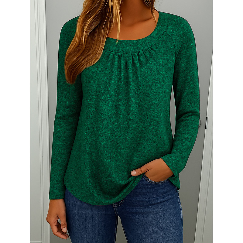 Women's T Shirt Blouse Casual Long Sleeve Crew Neck Regular Tops Daily Yellow Wine Blue Green Spring Fall
