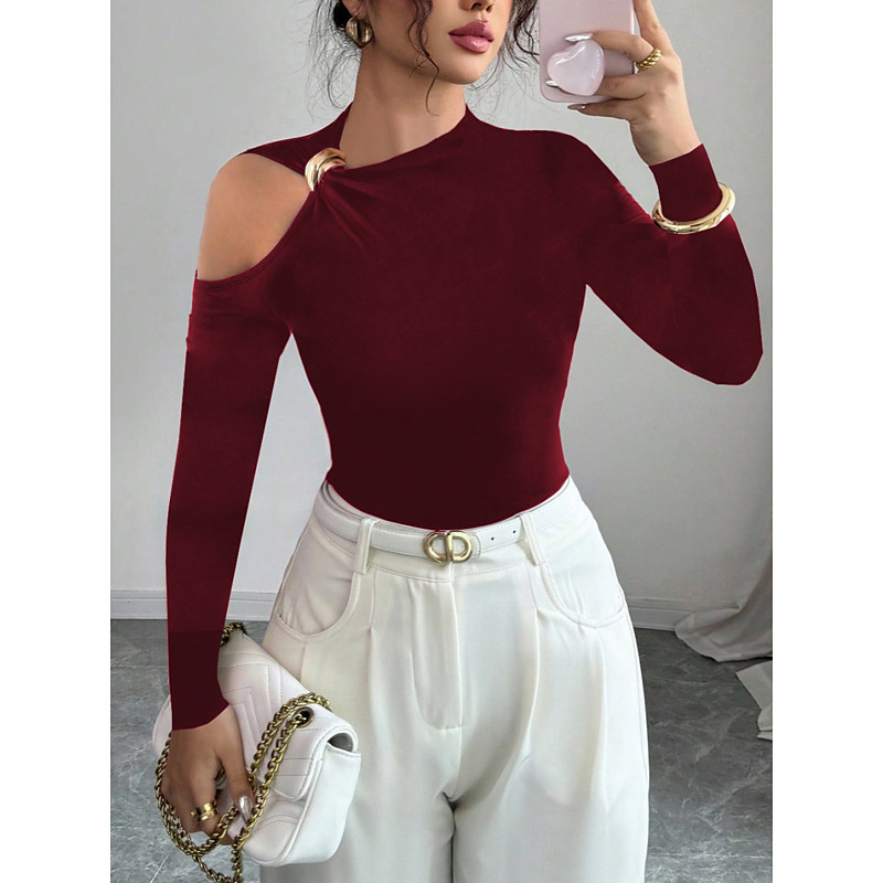 Women's Blouse Solid Color Stylish Casual Long Sleeve Asymmetrical Regular Tops Daily Patchwork Black Wine Khaki Spring Fall