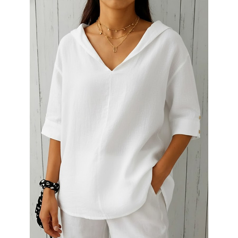 Women's Shirt Linen-Inspired Shirts Long Sleeve Shirt Collar Red Navy Blue Blue Spring Fall