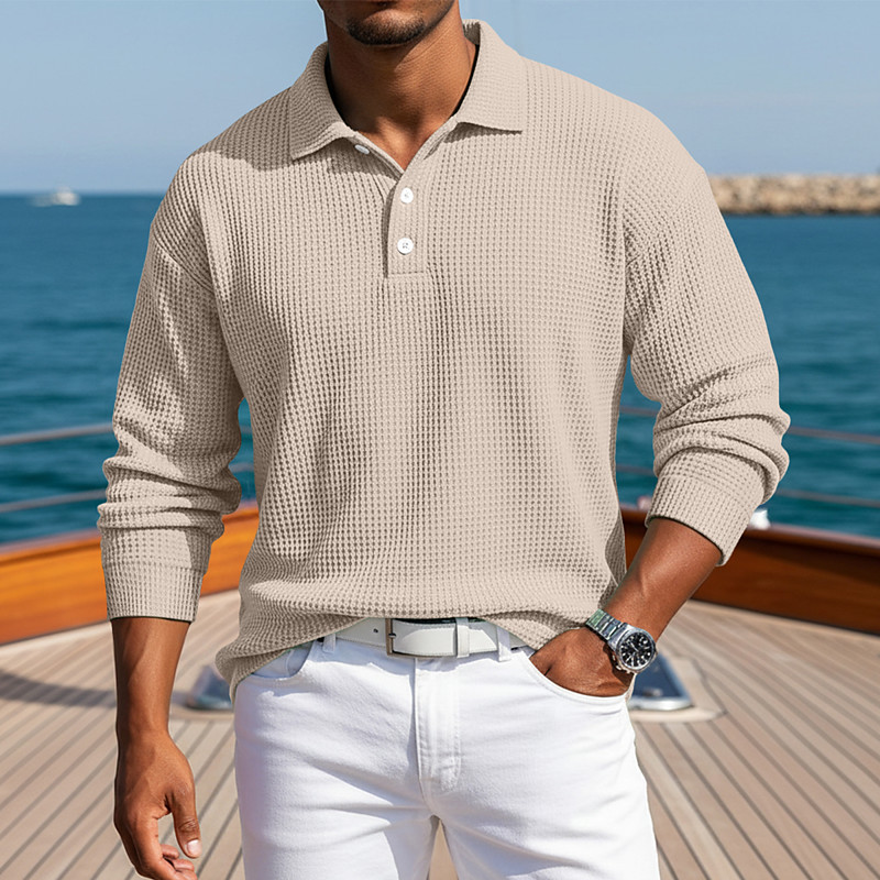 Men's Waffle Polo Shirts Textured Casual Business Ribbed Polo Collar Long Sleeve Fashion Solid Color Buttons Plain Fall Spring Fall Spring Summer Regular Fit Black Light Green Purple Green Khaki
