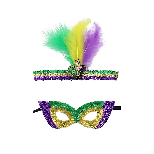 Damenschuhe Mardi Gras Polyester Pailletten-Maske und Haarband Set – Kräftige Farben mit Federn perfekt für Karneval und Maskenpartys