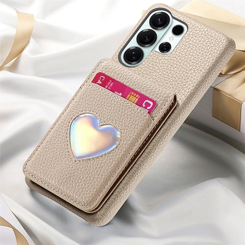 Handy Hülle Handyhüllen Für Samsung Galaxy S26 S26 Plus S26 Ultra Rückseite Brieftaschenhülle Mit Ständer Spiegel Herz Retro TPU PU-Leder