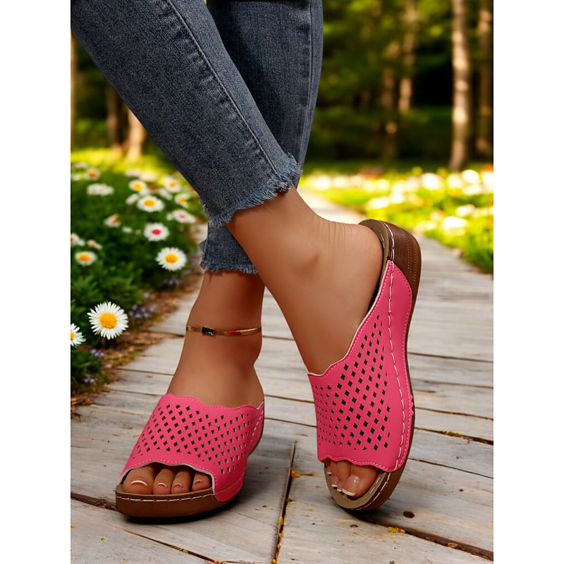 Women's Cutout Slip-On Sandals – Breathable Slide Sandals for Casual Summer Outings Travel