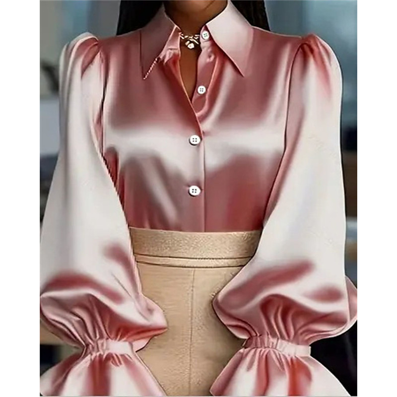 Women's Shirt Elegant Dressy Satin Solid Color Plain Elegant Vintage Cute Long Sleeve Puff Sleeve Shirt Collar Regular Tops Work Daily Holiday Ruched Patchwork Buttons Black Pink Wine Green Apricot