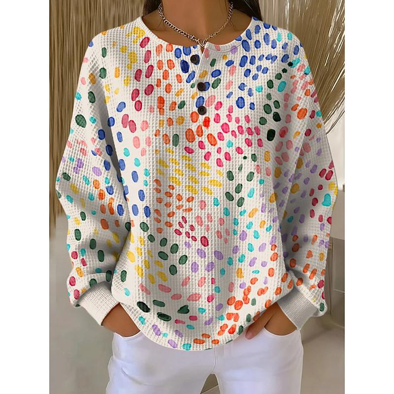 Women's Pullover Sweatshirt Graphic Geometric Fashion Casual Print Long Sleeve Crew Neck Regular Tops Casual Home Work Buttons Yellow Pink Green Spring Fall