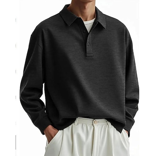 Per uomo Polo Maglia da golf Casuale Streetwear Bavero Manica Lunga Essenziale Moderno Semplice Tasca Bottoni Primavera Autunno Vestibilità regolare Blu Viola Nero Blu marino Fuschia Marrone Polo