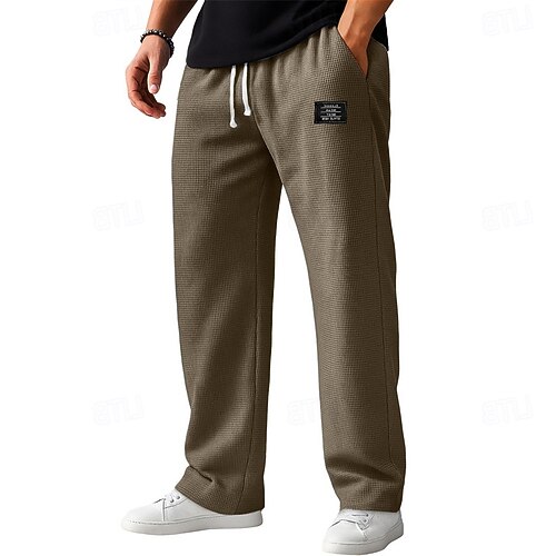 Herren Jogginghose Hose Gerade geschnittene Sweatpants Waffelhose Kordelzug Tasche Elastischer Bund Einfach Komfort Sport im Freien Täglich Mode Lässig Schwarz Weiß Mikroelastisch