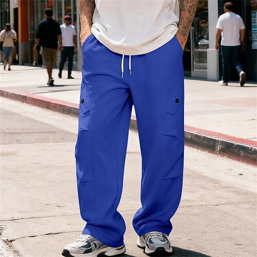 Herren Baggy-Jogginghose Jogginghose Hose Waffelhose Kordelzug Tasche Elastischer Bund Einfach Komfort Sport im Freien Täglich Mode Lässig Blau Schwarz Mikroelastisch