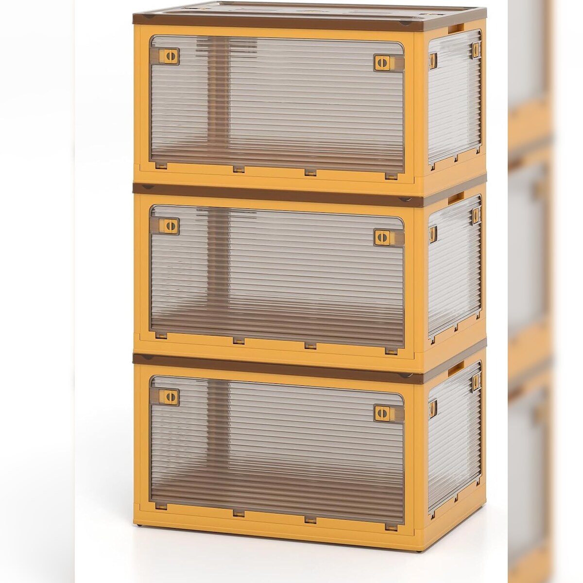 COSTWAY Pack mit 3 faltbaren Aufbewahrungsboxen, 98 L x 3 stapelbare Boxen, Aufbewahrungsbehälter, Kunststoffbox mit Deckel, Rädern & 5 Türen (Gelb)