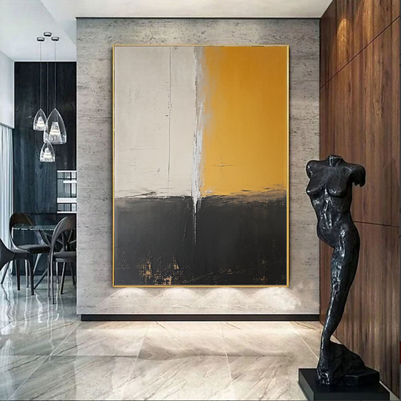 Large Yellow Minimalist Textured Abstract Painting Black and White 3D Textured Abstract Art Acrylic Abstract Textured Painting Modern Art