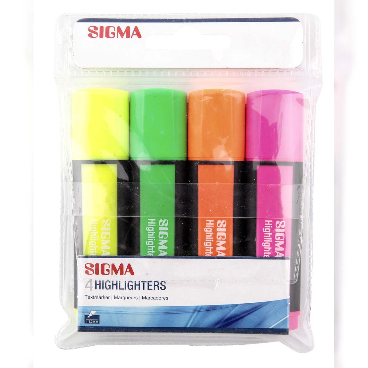 SIGMA Textmarker, farbig sortiert, Flachspitze, Strichstärke: 1-5.2 mm, mit Schutzkappe, 4 Stück