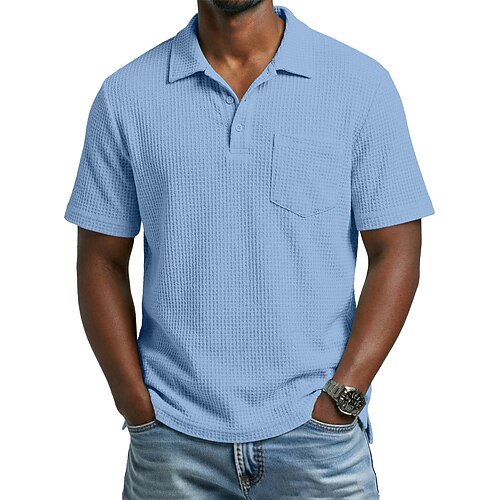 Per uomo Maglia da golf Polo a Maglia Waffle Casuale Affari Collo ripiegato Classico Manica Corta Moda Moderno Tinta unica Semplice Tasca Bottoni Estate Primavera Vestibilità regolare Nero Bianco Blu