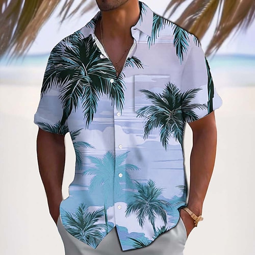 Per uomo Palma di Cocco Camicia casual Camicia hawaiana estiva Camicia Aloha Manica Corta Hawaiano Resort Casual Casuale Estate Primavera Collo ripiegato Cardigan con Bottoni Rosa Blu Verde Grigio