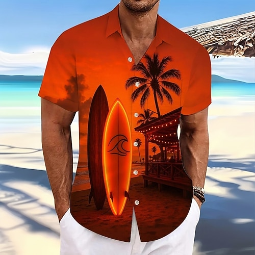 Per uomo Albero di Cocco Piante Tropicali Tavole da surf Camicia hawaiana estiva Camicia con Bottoni Camicia Aloha Manica Corta Hawaiano Casuale Vacanza Estate Primavera Collo ripiegato Stampa 3D