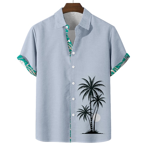 Per uomo Albero di Cocco Piante Tropicali Camicia di lino Camicia da Spiaggia Camicia hawaiana estiva Manica Corta Hawaiano Vacanza Ferie Abbigliamento mare Estate Primavera Colletto camicie con