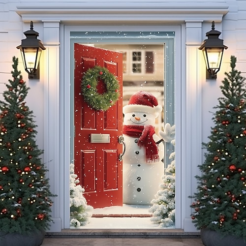 Copriporta natalizio, decorazione invernale per le feste, con stampa di pupazzo di neve e ghirlanda natalizia, per ingresso, soggiorno, camera da letto, interni ed esterni, decorazioni festive