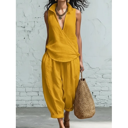 Per donna Set di biancheria in cotone Set di Pantaloni Senza Maniche Scollo a V Semplice Moda Streetwear Casuale Quotidiano All'aperto Blu Nero Bianco Estate Vestibilità comoda