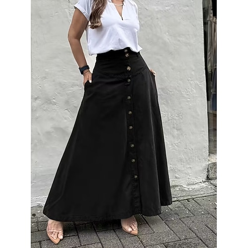 Per donna Gonna da vacanza Moda Casual Maxi Vita Alta Gonne Semplice Tasca Micro-elastico Quotidiano Streetwear Nero Marrone Verde Grigio Estate Poliestere