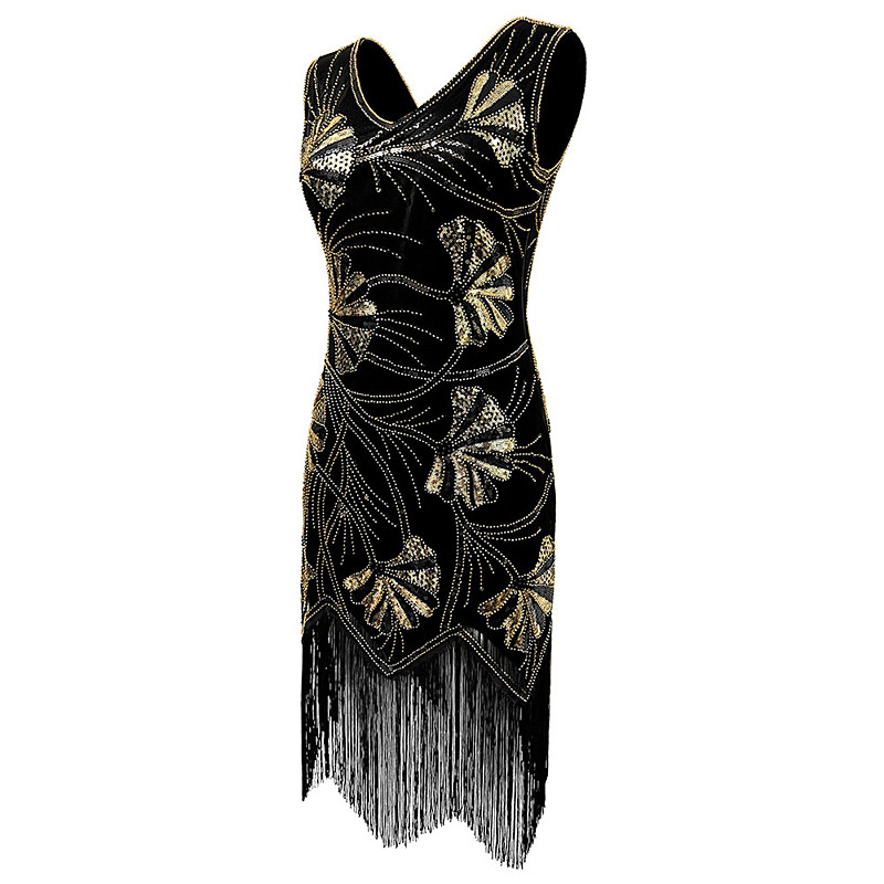 Roaring 20s 1920s Knee Length Flapper Dress Sleeveless The Great Gatsby Sequins Fringe V Neck Fancy Dress Women's Christmas Carnival Masquerade Retro Theme Party Charleston Dance Adults Dress