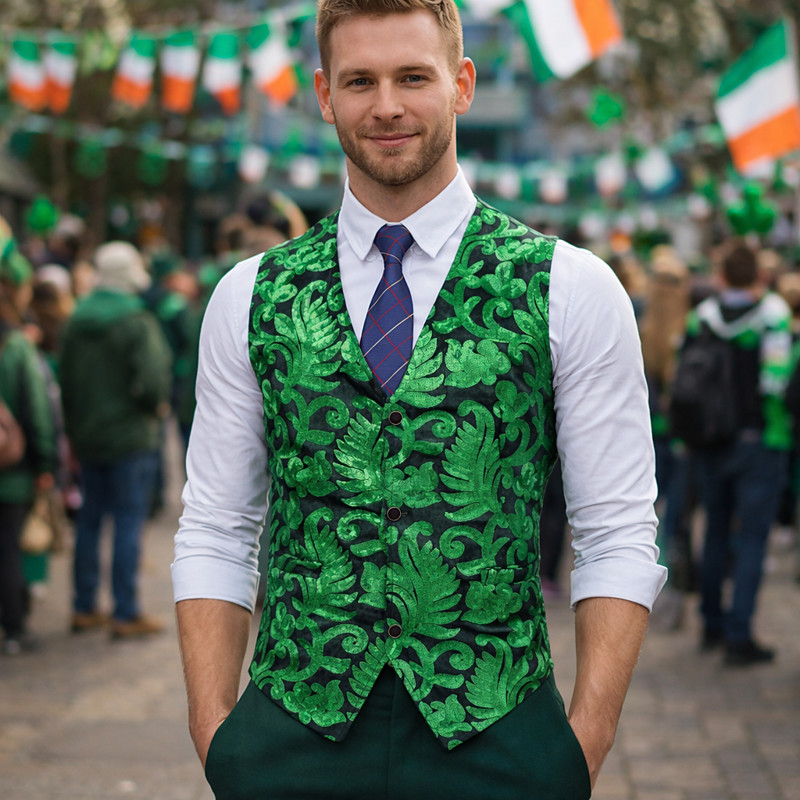 Retro Vintage Roaring 20s 1920s Waistcoat Gentleman Gangster Paisley Jacquard Fancy Dress Men's Carnival Costume Carnival Saint Patrick's Day Cocktail Party Theme Party Bachelorette Party Adults' Vest