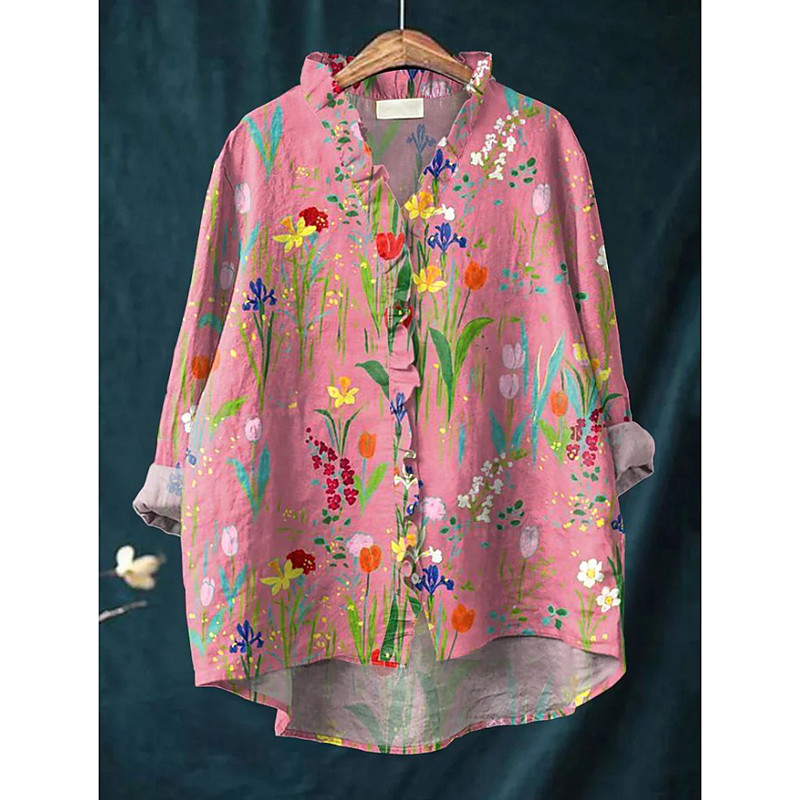 Women's Boho Shirt Floral Graphic Bohemia Vintage Stylish Long Sleeve Regular Tops Daily Holiday Ruffle Sage Green Pink Dusty Rose Purple Fuchsia Summer Spring Fall