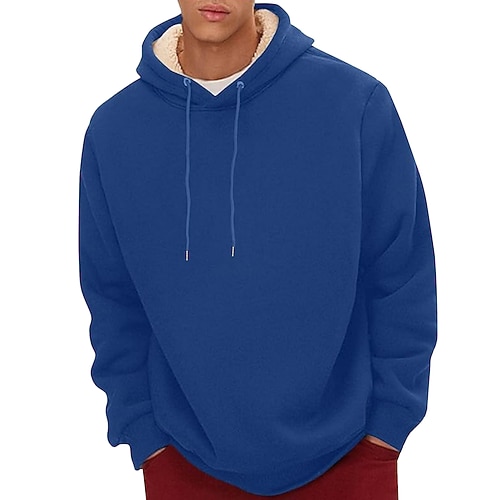 Per uomo Felpa con cappuccio in pile Felpa con cappuccio in pile Sherpa Aalbicocca Nero Giallo Vino Blu marino Con Cappuccio Semplice Coulisse Casuale Quotidiano Uscire Poliestere Streetwear Casual