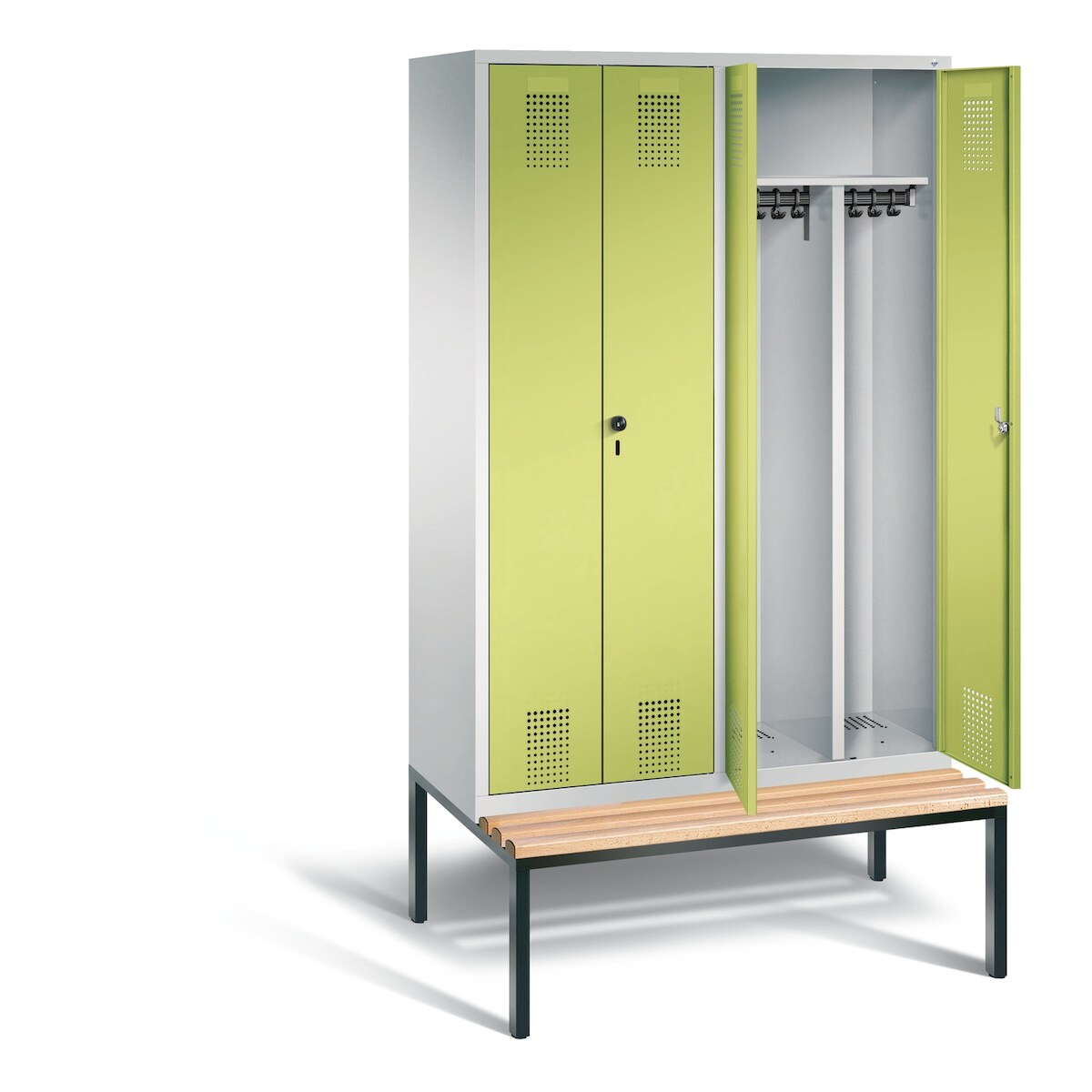 C+P Doppel-Spind Classic PLUS, Kunststoff schwebende Sitzbank, 2 Abteile, HxBxT 212x60x82cm, Zylinderschloss, Hellgrau/Clowngrün von PROREGAL