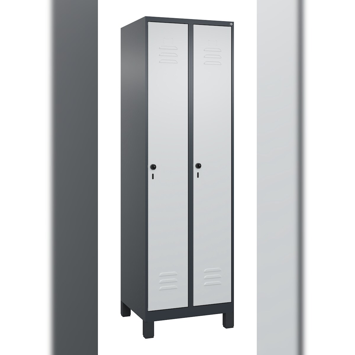 C+P Spind Classic PLUS, Füßen, 2 Abteile, HxBxT 195x60x50cm, Sicherheitsdrehriegel, Anthrazit/Hellgrau von PROREGAL