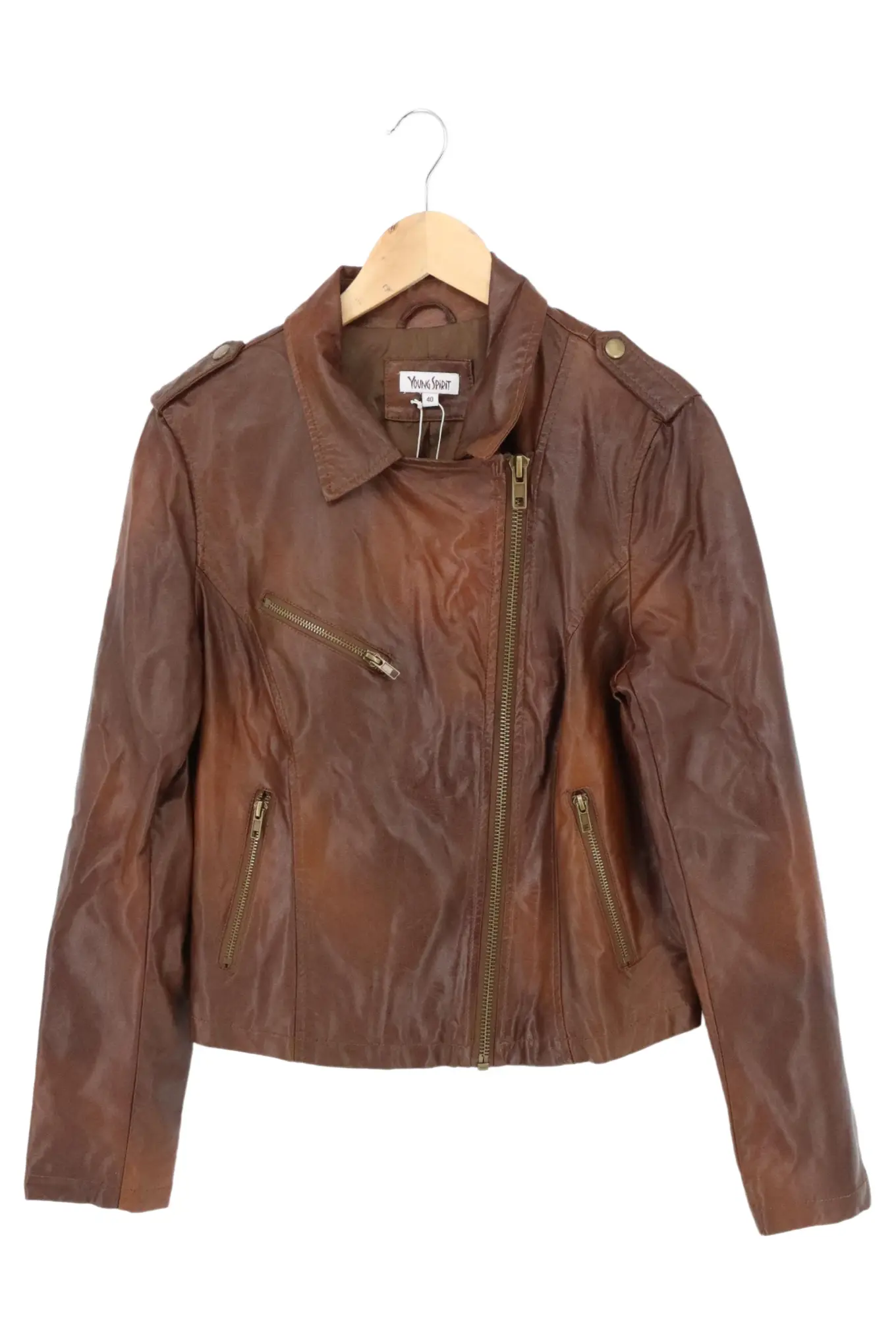 YOUNG SPIRIT Lederjacke Braun Gr. 40 Damen Biker Stil Neu
