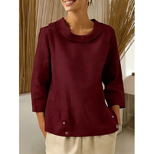 Per donna Blusa Top Eleganti Arricciato Patchwork Bottoni Tinta unica Semplice Elegante Signore Classico Manica Lunga Girocollo Top Regolari Quotidiano Lavoro Ferie Blu Giallo Rosa Vino Blu Reale