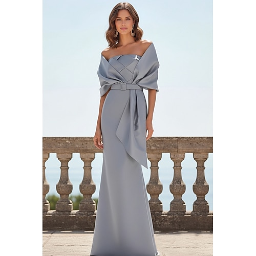Tute Lunghezza al pavimento Abito da cerimonia per signora Manica Corta Girocollo Elegante Semplice Formale Ospite di nozze Riunione di famiglia Tessuto Elasticizzato con Tinta unita