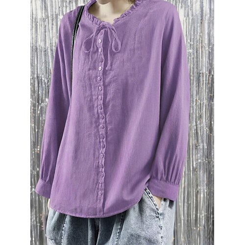 Per donna Blusa Top Eleganti Arricciato Patchwork Bottoni Tinta unica Semplice Elegante Signore Essenziale Manica Lunga Colletto a Camicia Top Regolari Quotidiano Lavoro Ferie Nero Viola Estate