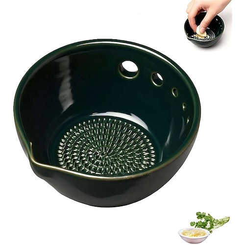 ciotola per erbe aromatiche con grattugia per aglio fatta a mano, ciotola per erbe aromatiche in ceramica 2 in 1 con 5 fori, ciotole multifunzionali per erbe aromatiche con grattugia per aglio
