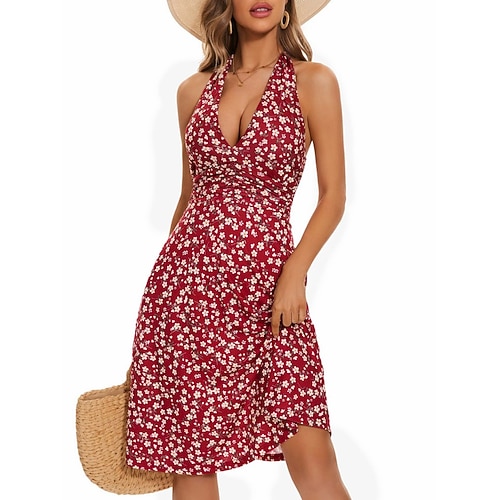 Per donna Mini Abito Abito a trapezio Vestito all'americana Vacanza Casual All'aperto Uscire Vestibilità regolare Floreale Grafico Senza Maniche All'americana Blu Giallo Rosa Rosso Estate Primavera