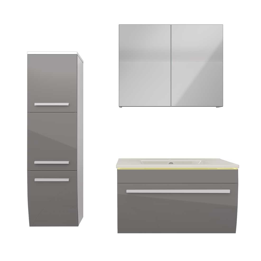 AcquaVapore Badmöbel Set Gently 3 V2-L Weiß/Grau Badezimmermöbel Badspiegel Waschtisch 70 cm mit 1x 5W LED-Strahler