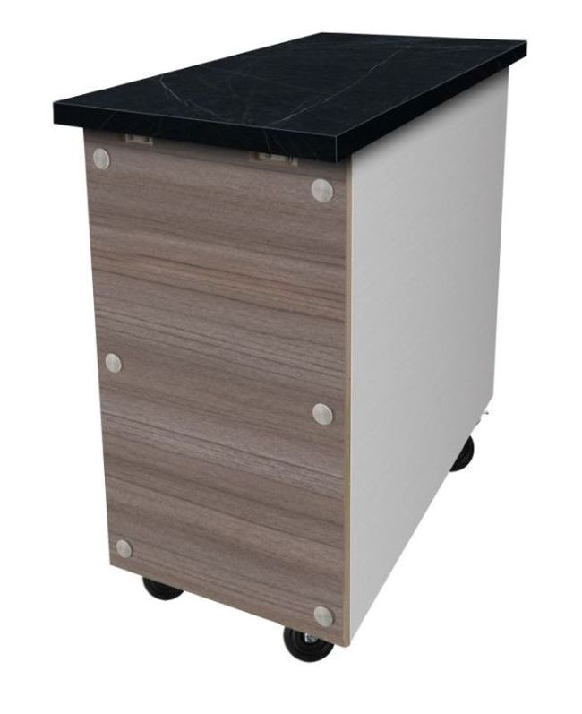 Skyrainbow Kassentisch Aus Edelstahl, Granit Star Galaxy Schwarz, Mit Holzverkleidung, 80 X 82
