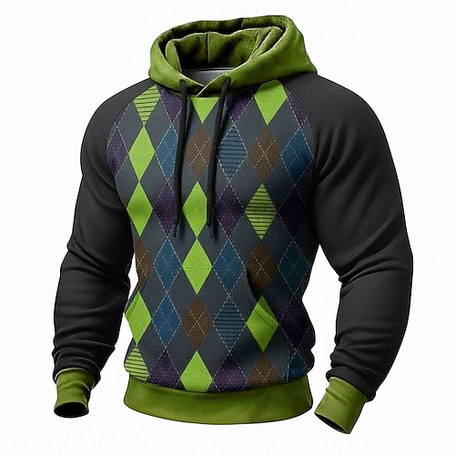 Per uomo Geometrico Plaid Felpa con Cappuccio Felpa Moda Quotidiano Girocollo Casa Abbigliamento casual alla moda Feste Blu Marrone Verde Coulisse Autunno Inverno progettista S M L XL XXL XXL