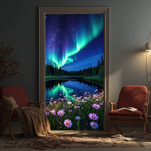 fiori di ciliegio rosa, albero di sakura, lago sereno, montagne, paesaggio zen nebbioso, arazzo da parete, striscione per porta, arredamento per la casa, soggiorno, camera da letto, decorazione,